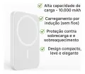 Powerbank com carregamento por indução magnética compatível com MagSafe, oferecendo conveniência sem fio e energia de reserva para iPhone de forma prática e segura.